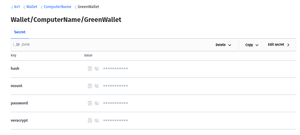 VaultApi Kv1Update kv1/Wallet/ComputerName/GreenWallet '/media/greenwallet' mount